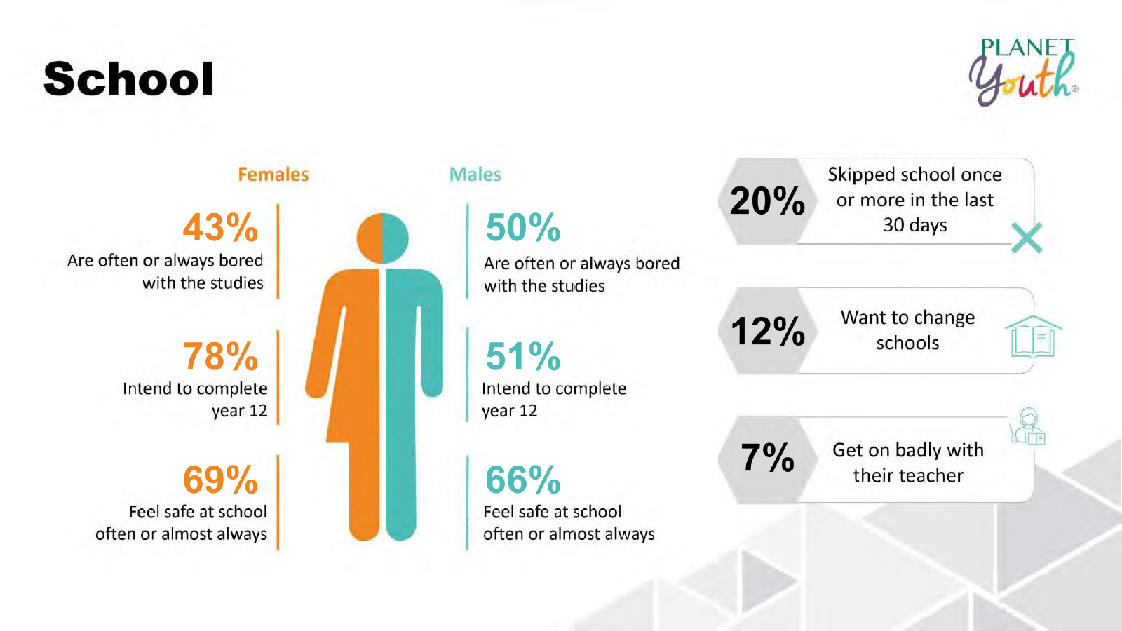 The Planet Youth Model uses the local surveys to inform evidence-based, community lead action on the ground. These actions are tailored to the needs of the community, recognising that every community is unique and there is no “one size fits all” solution when it comes to addressing alcohol and drug issues.